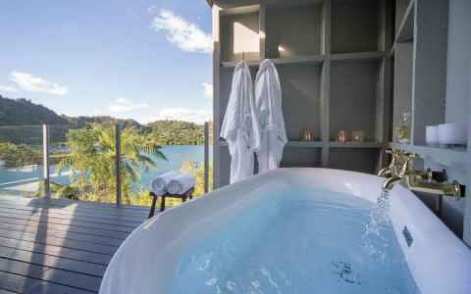 Solitaire Lodge, one of New Zealand’s premiere luxury lodges, enjoys breathtaking views over Lake Tarawera with a lush natural bush and volcanic landscape backdrop. From the moment you enter below the Lodge’s vintage beams, the shade sails beckon you through and your adventure begins. The main lounge yields a spectacular vista due to the lodge’s extraordinary location. Nearby, our fine dining restaurant is available for your patronage. Easy lake access allows the exploration of surrounding waters directly from Solitaire’s private grounds and jetty.
