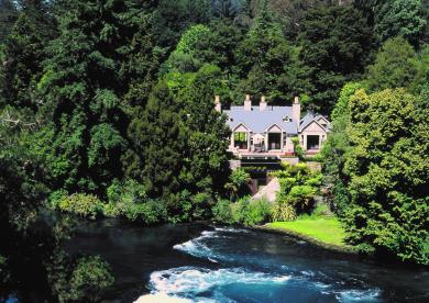 The en suite rooms all have super-king size beds, comfortable chairs for lounging and the romance of a fireplace in your bedroom. Two of the guest suites face the river while the other two enjoy a beautiful private courtyard garden aspect. These gardens also feature one of the magnificent outdoor fireplaces that can be found tucked away within the environs of Huka Lodge.